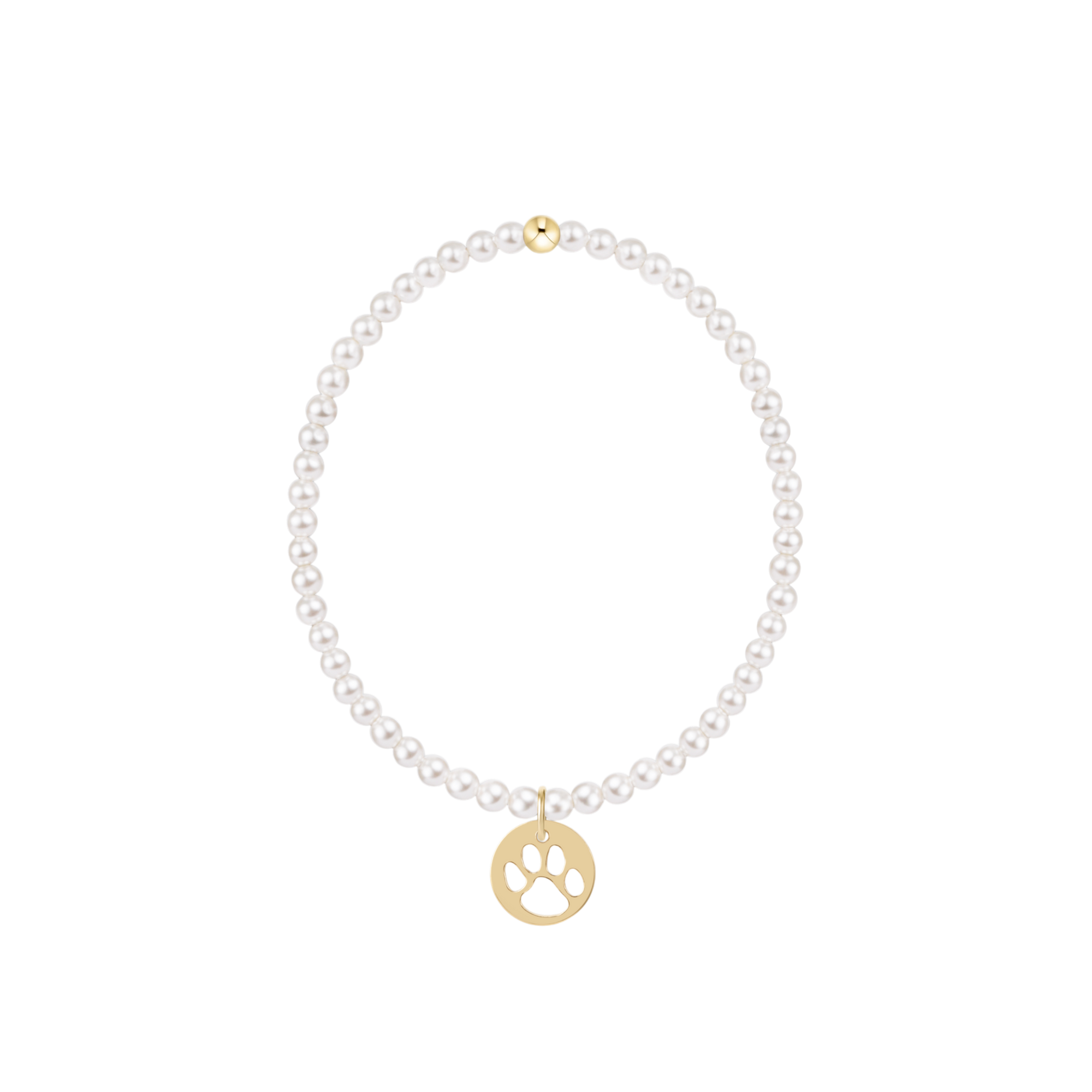 Classic Pearl 3mm Bracelet - Paw Print Gold Disc