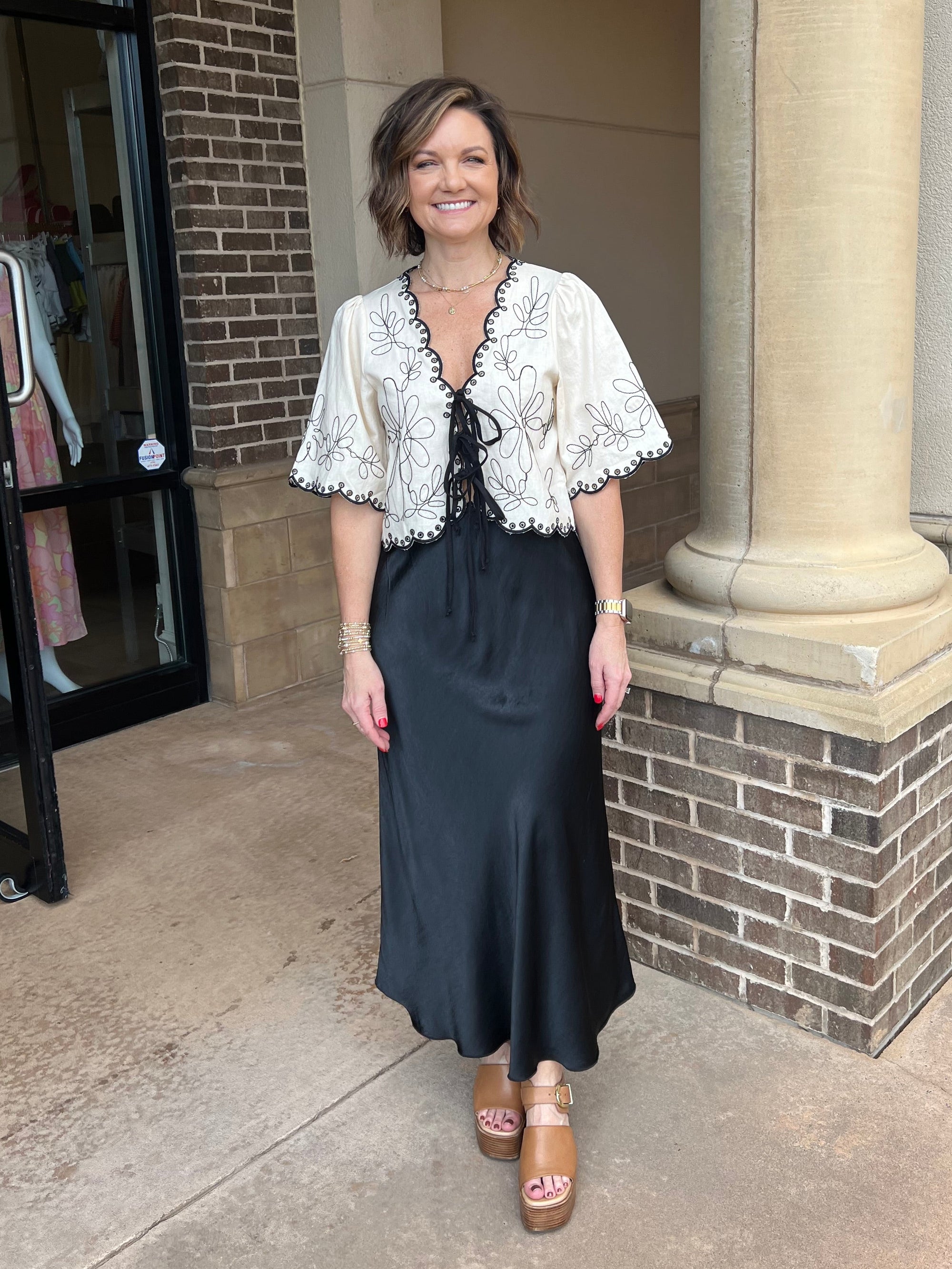 Floral Frame Tier Smock Maxi Skirt - Brown