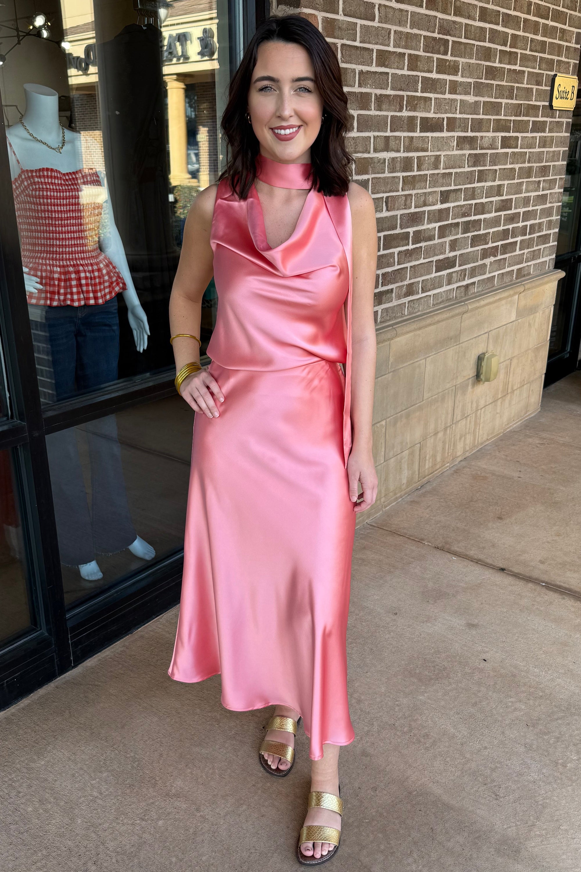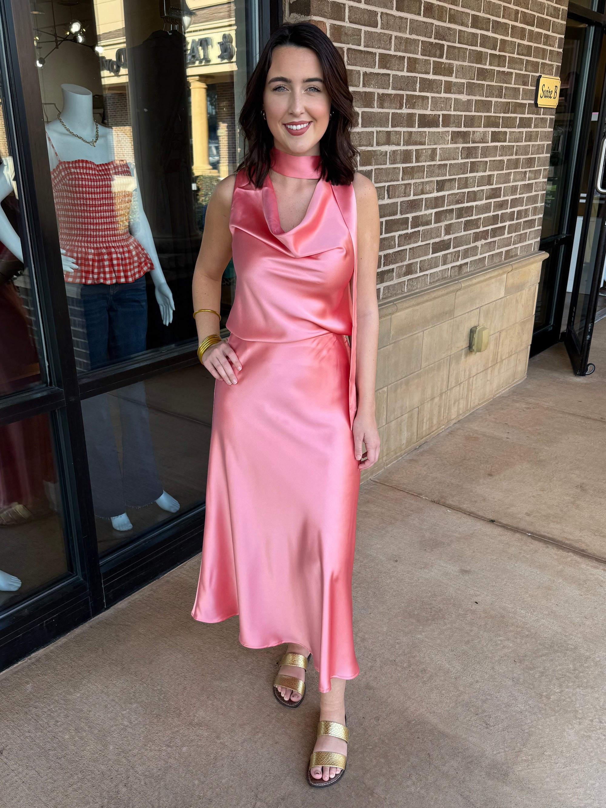 Solid Poplin Ruffle Neck Tie Back Dress - Pink