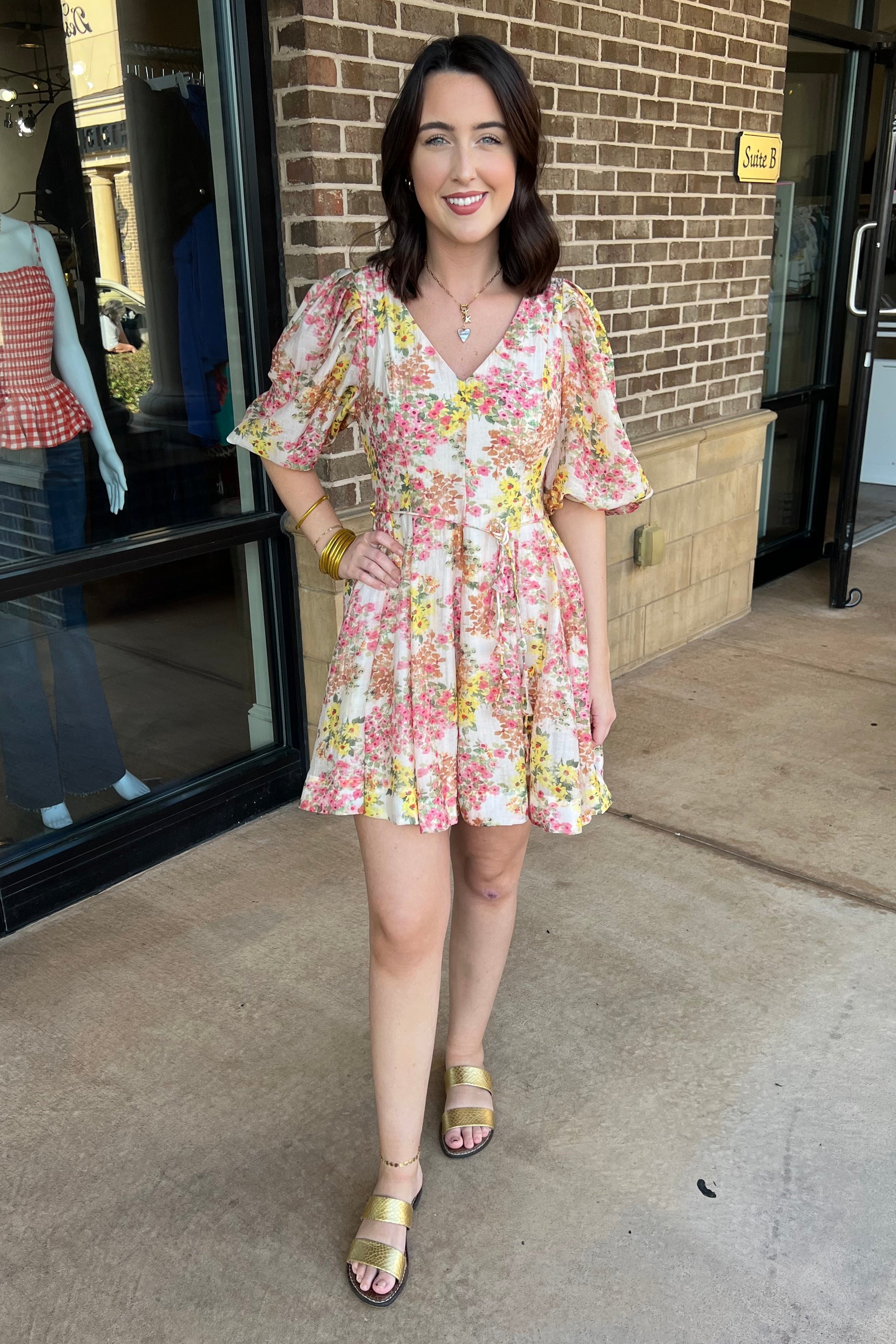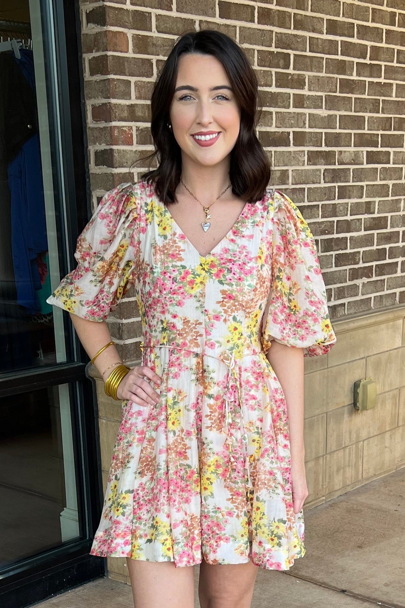 Floral Bubble Hem Poplin Dress - Lavender / Orange
