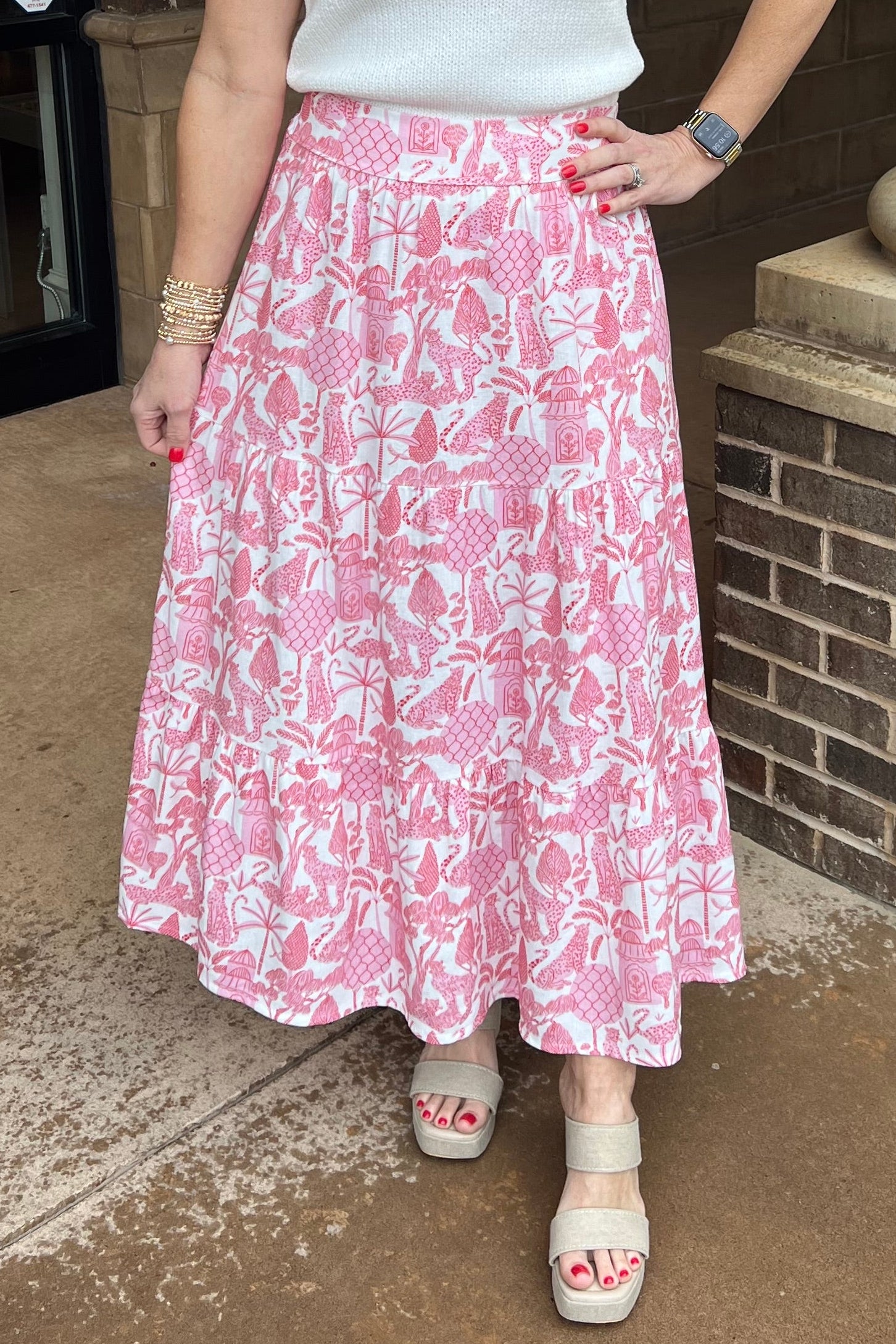 Patterned Maxi Skirt - Pink Toile