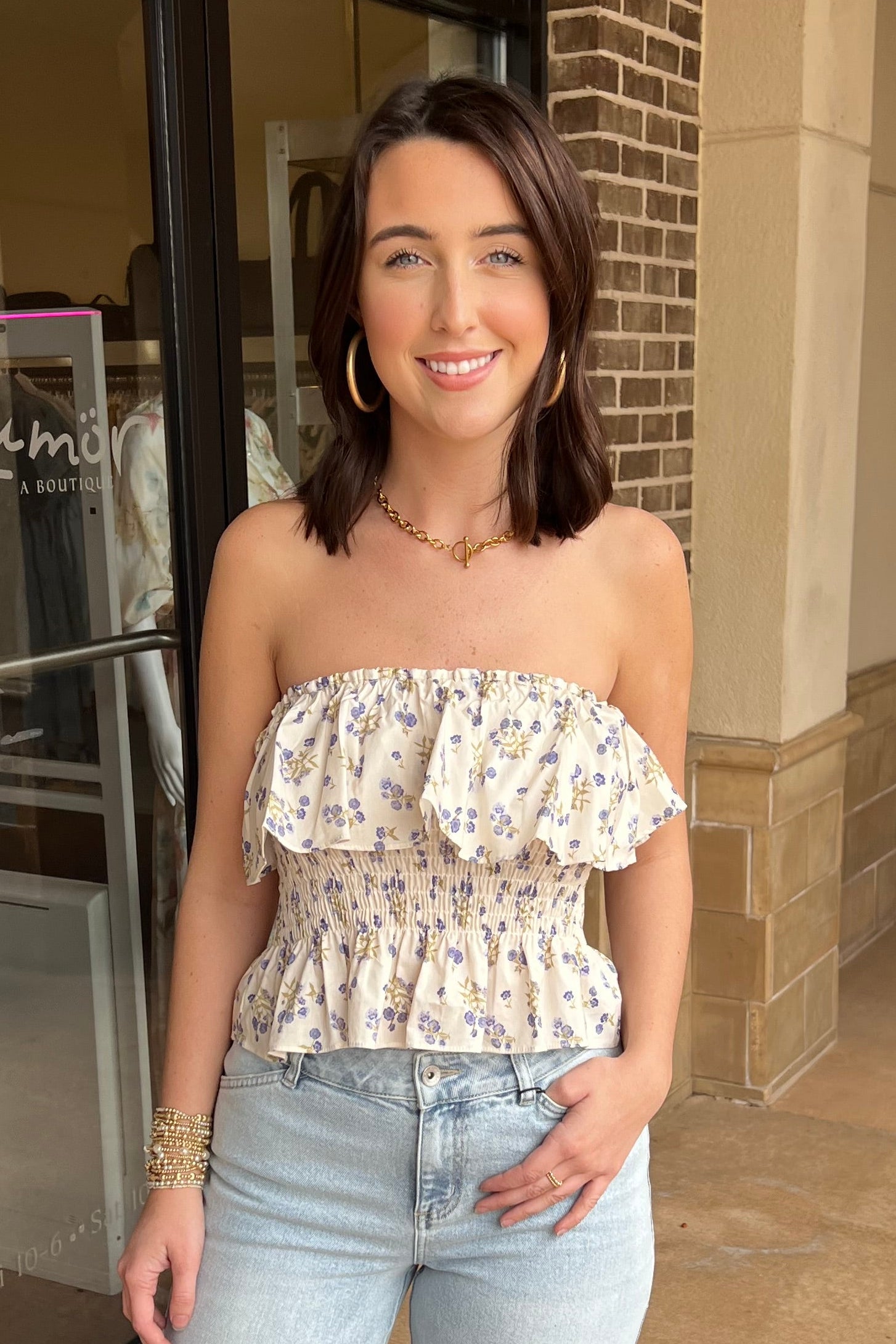 Isabelle Strapless Tiered Top - Vintage Bloom