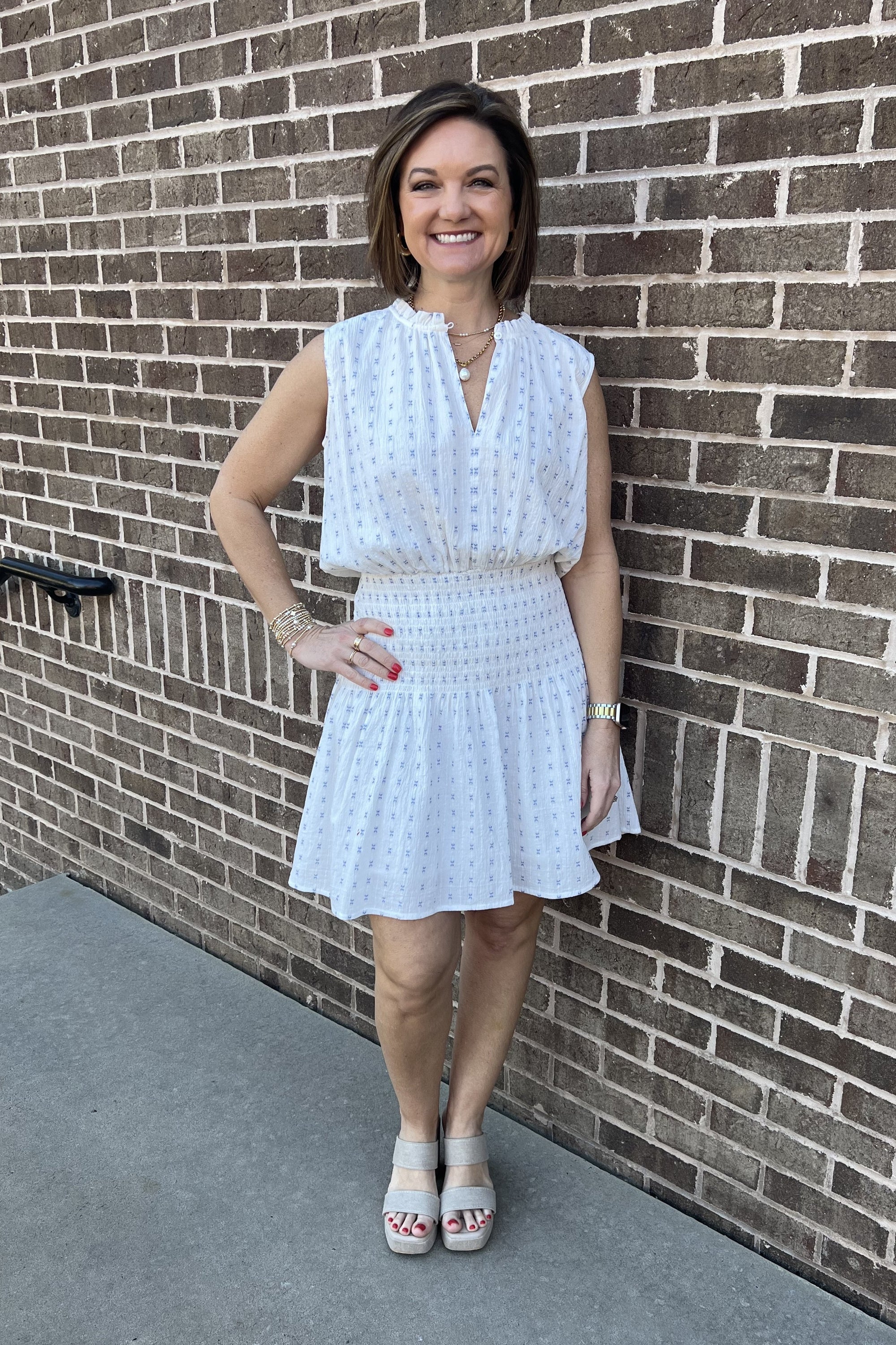 Marmont Sleeveless Dress - Embroidered Azure