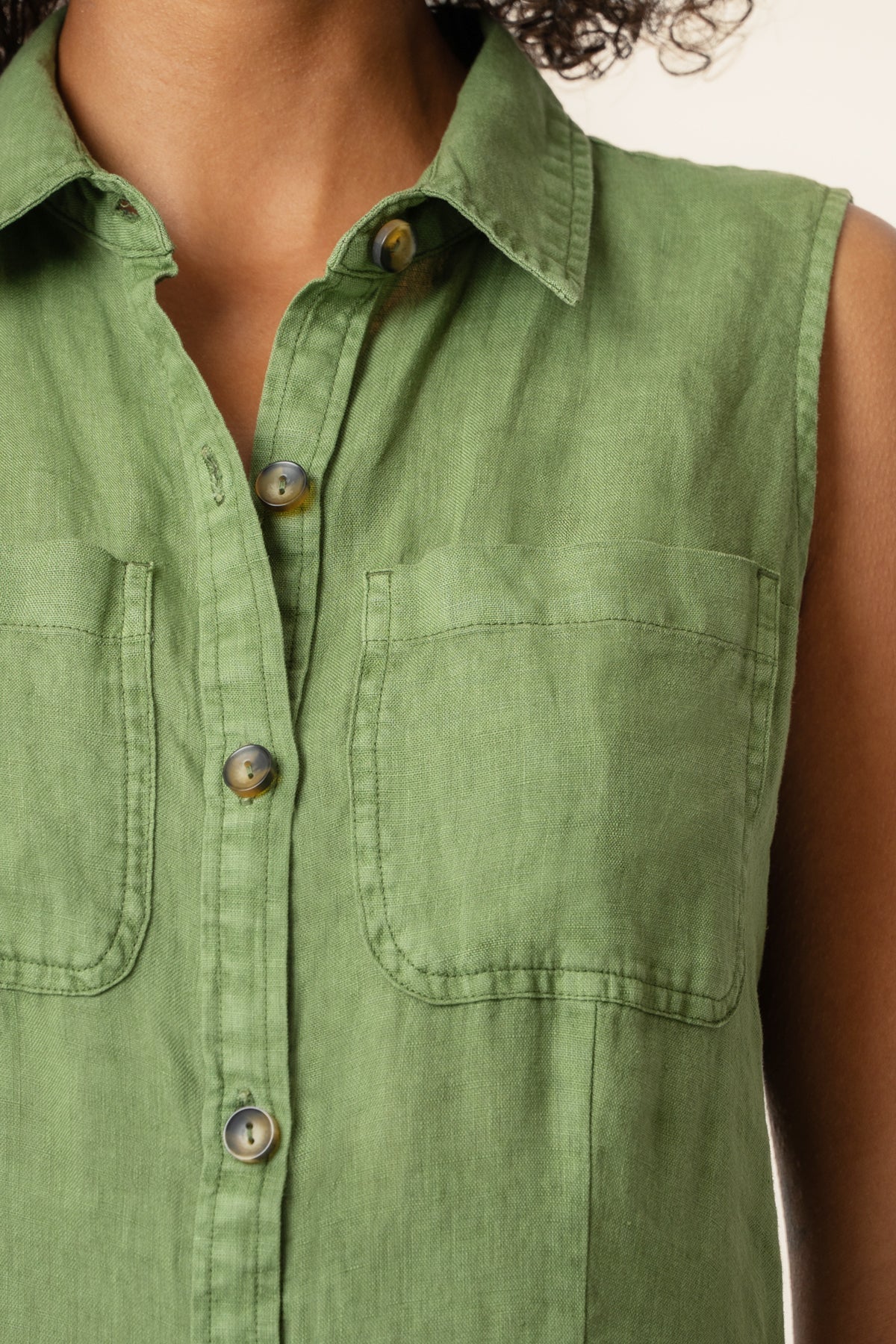 Sleeveless Collared Top - Burlap Stripe