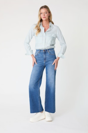 Maya High Rise Wide Leg Patch Pocket Jean - Affection
