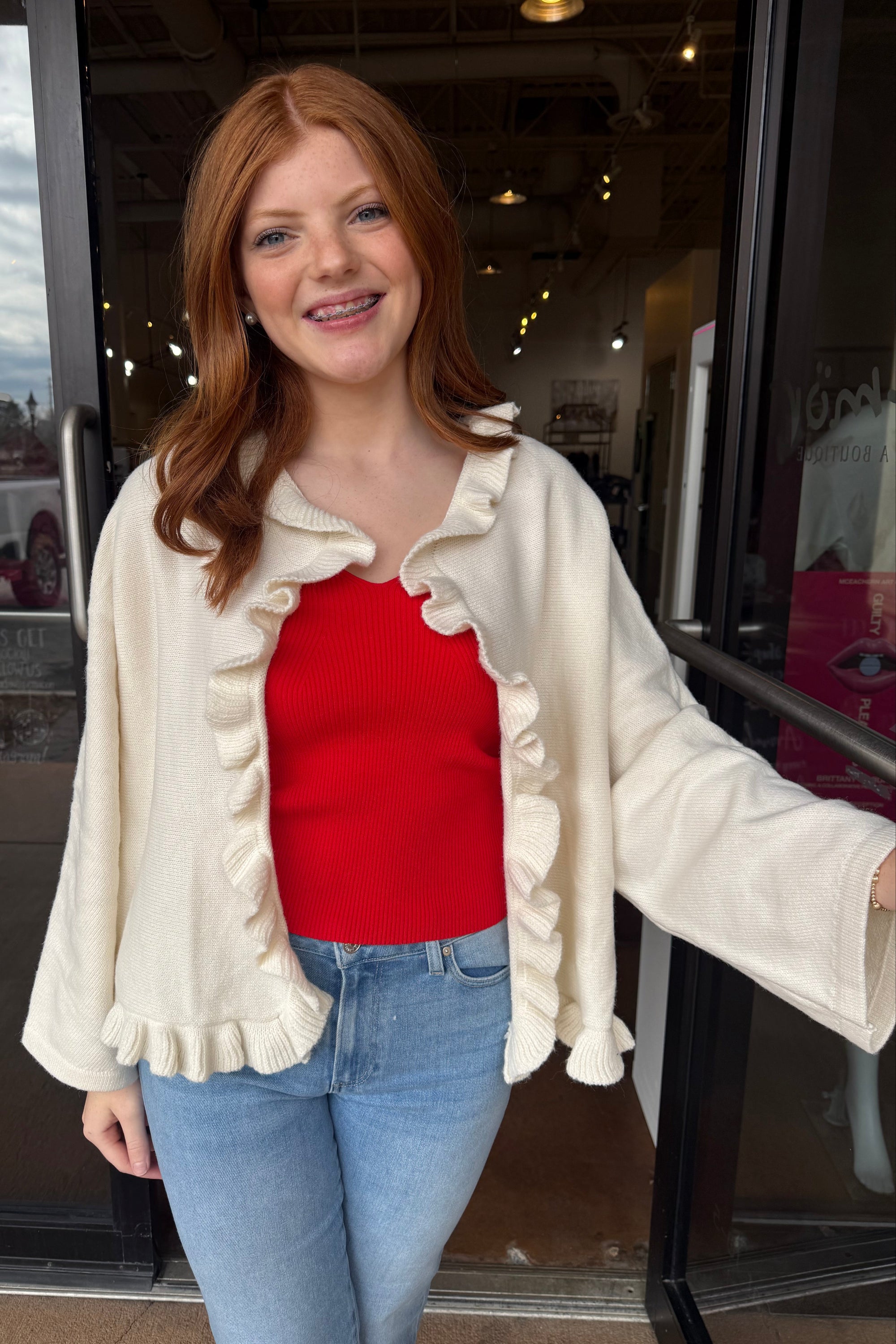 Sabrina Ruffle Cardigan - Ivory