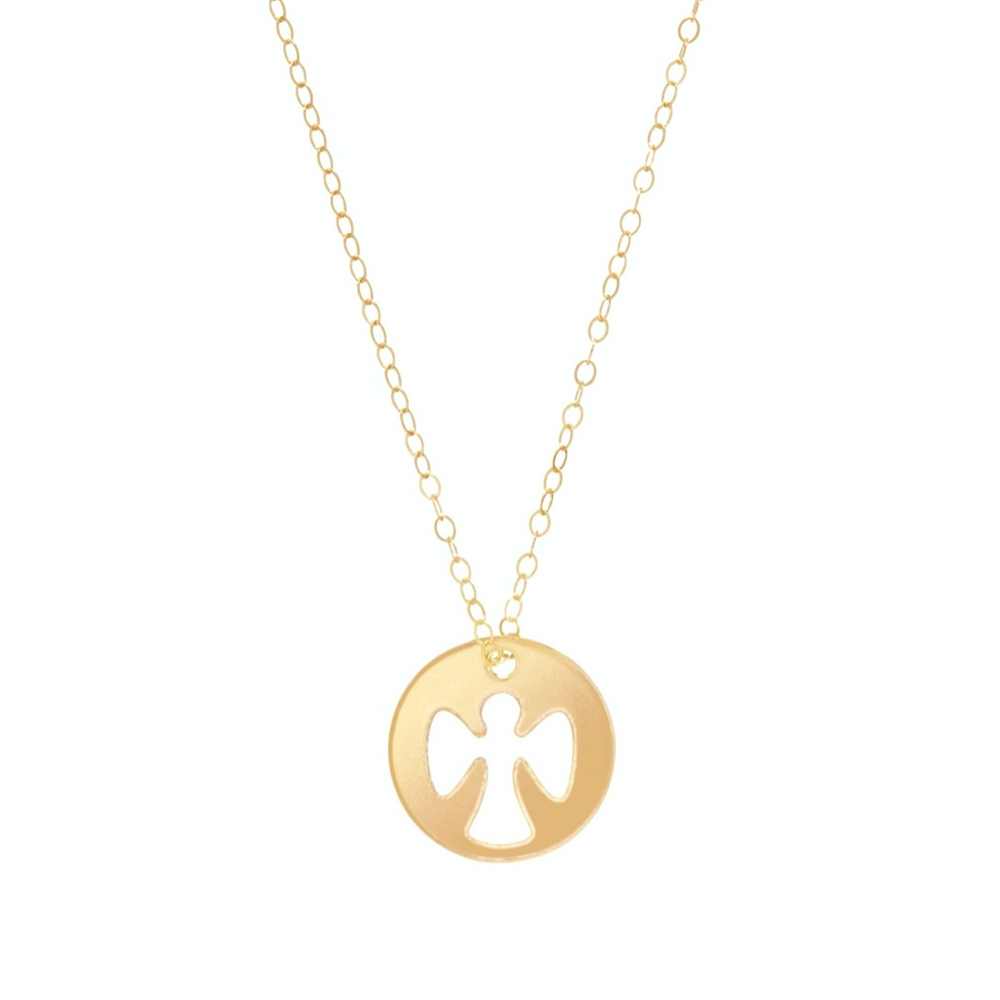 16" Necklace Gold - Guardian Angel Gold Disc