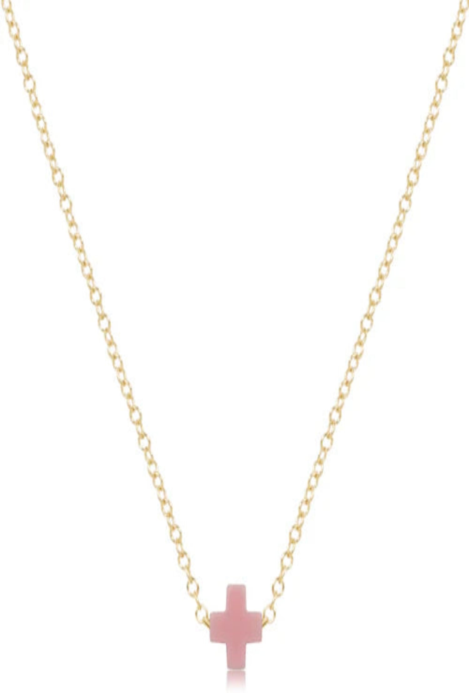 16" Necklace Gold - Signature Cross Pink