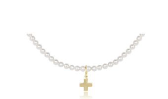 15" Choker Beaded - Classic Pearl 3mm - Signature Cross Gold Charm