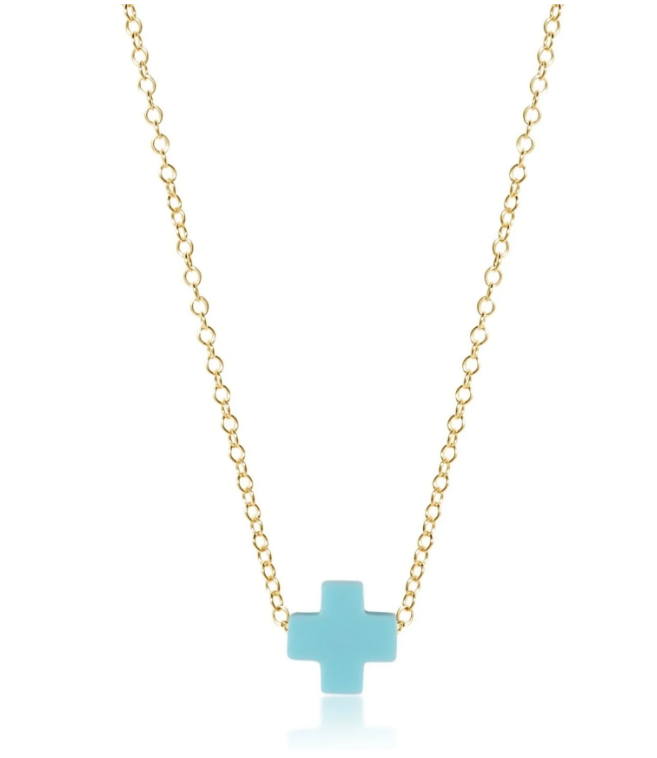 16" Necklace Gold - Signature Cross Turquoise