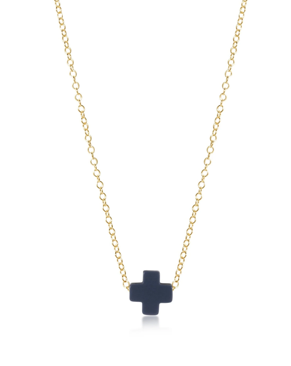 16" Necklace Gold - Signature Cross Small Cobalt