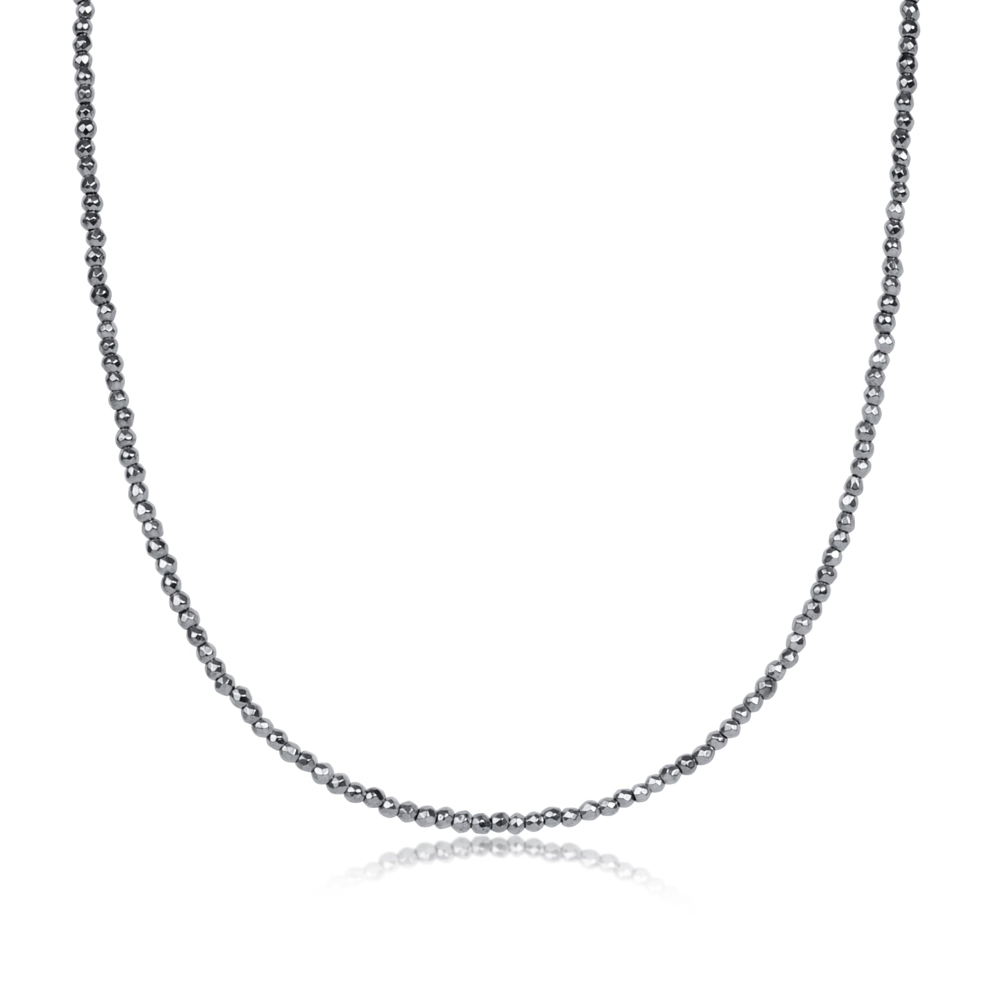 17" Choker Silver Faceted Hematite 2mm Bead