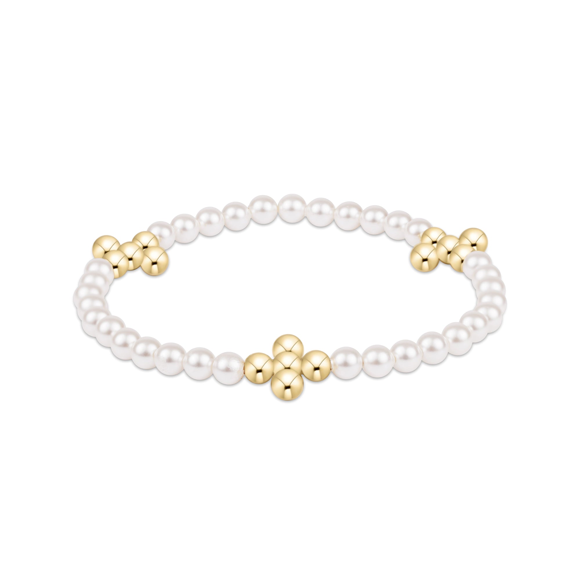 Beaded 4mm Gold Signature Cross 4mm Pearl Bracelet