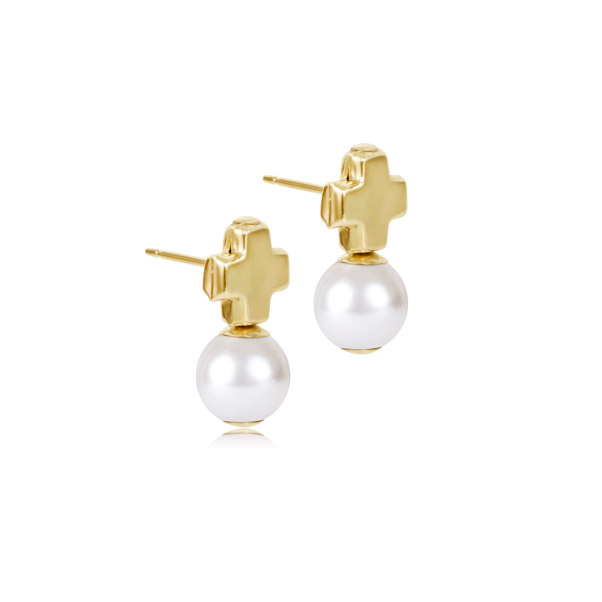 Signature Cross Small Gold Stud - Classic Pearl