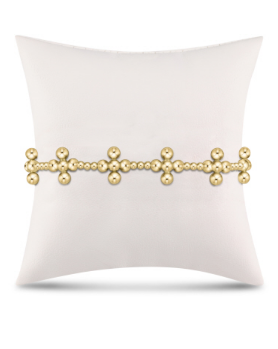 Signature Cross Sincerity Pattern 2.5mm Bead Bracelet - Classic Beaded Signature Cross Gold - 4mm Bead Gold