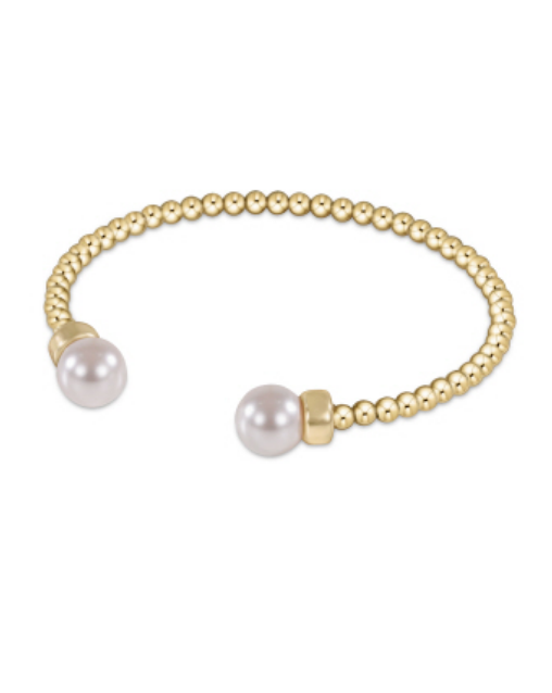 Classic Gold 2mm Bead Cuff - Pearl