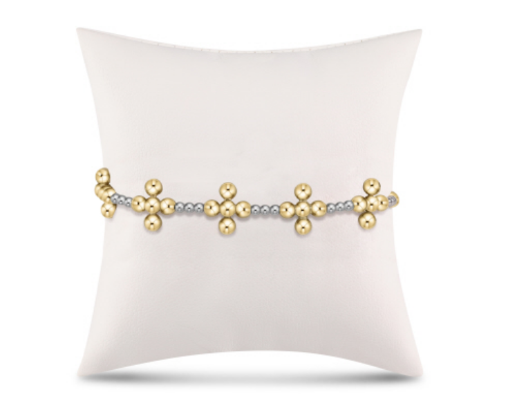 Signature Cross Sincerity Pattern Pearl 3mm Bead Bracelet - Classic Beaded Signature Cross Gold - 4mm Bead Gold
