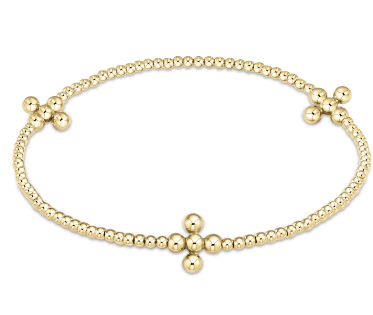Classic Gold 3mm Bracelet - Signature Cross 4mm Beaded Gold Charm