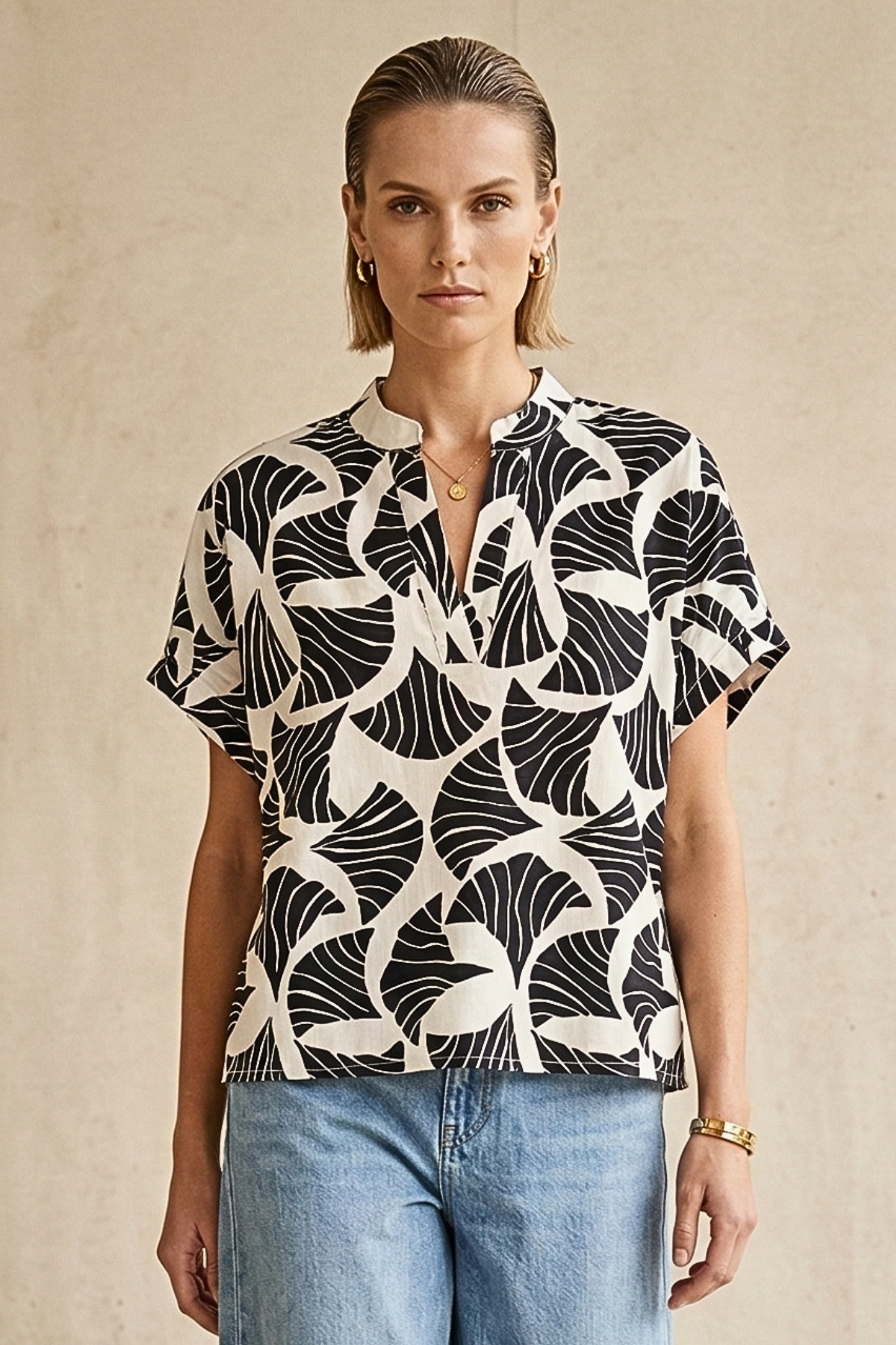 Short Sleeve Puritan Collar Shirt - Blue Bell