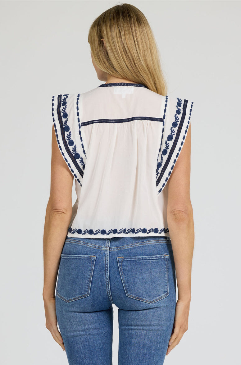 Janel Embroidered Detail Top - White